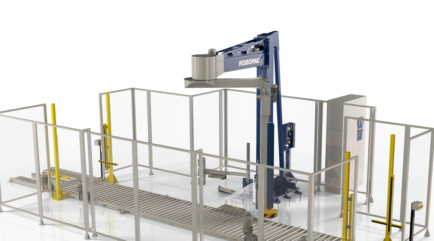 帶有旋轉(zhuǎn)臂的半自動(dòng)纏繞膜包裝機(jī),用拉伸膜包裹特別不穩(wěn)定的產(chǎn)品的理想解決方案。