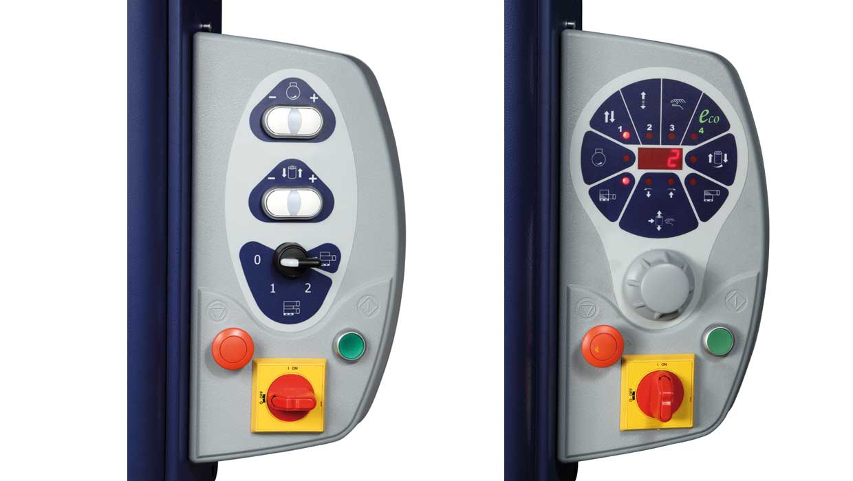 Ecoplat有三個版本,BASE FRD、FRD 和 PPS?;景媾鋫鋷C電按鈕的面板。