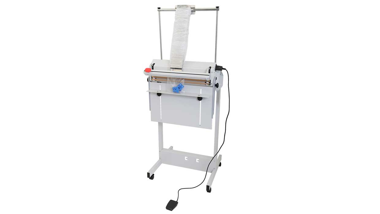 這種現(xiàn)成的固定式封口機(jī)由電動機(jī)驅(qū)動,并配有電動腳踏板。操作人員將雙手放開并可以更有效地工作。包裝的密封具有一致且可靠的質(zhì)量。