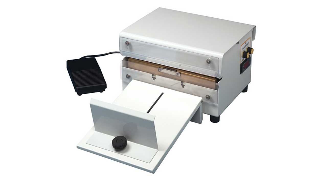 齒形恒熱密封棒可對(duì)不同種類的復(fù)合袋施加高壓力,例如:紙塑復(fù)合,鋁塑復(fù)合,PP和玻璃紙等。密封棒上的邊緣確保密封的正確位置。除了踏板操作之外,LAMINO還可以在自動(dòng)模式下運(yùn)行(由計(jì)時(shí)器控制)。