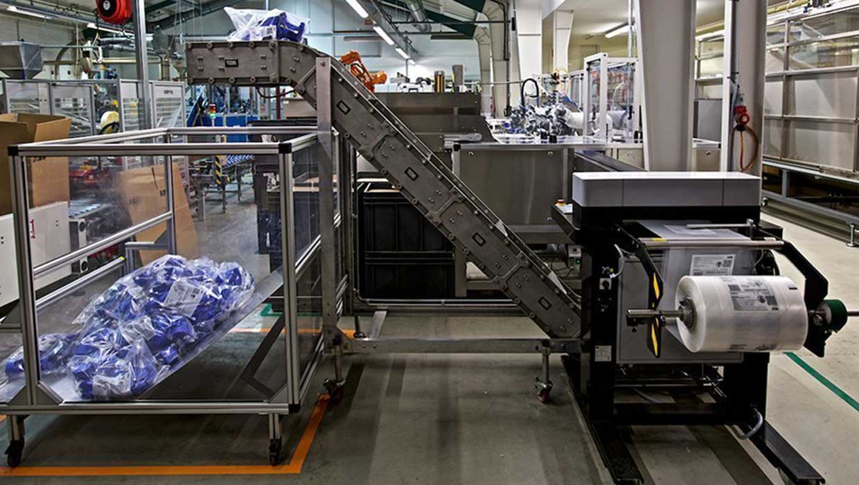 裝袋包裝機在自動化裝配生產(chǎn)線的末端!