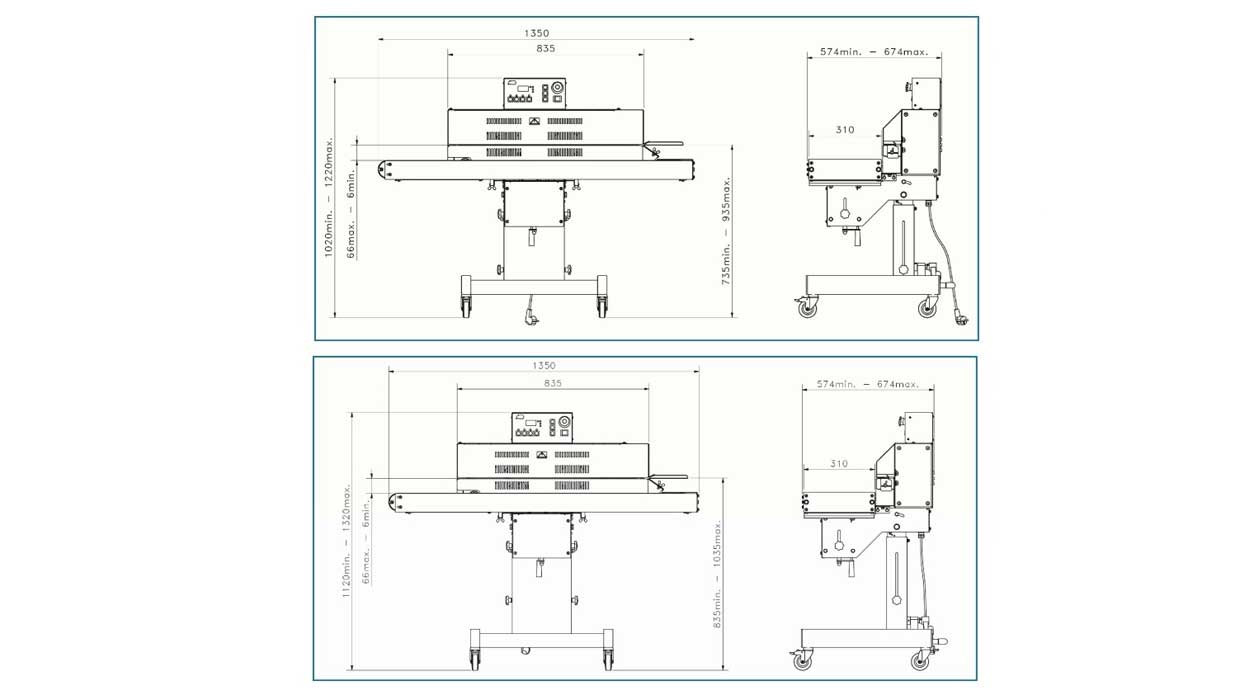 √ 輸送面和密封口的高度距離也可以調(diào)整,最大35 mm。