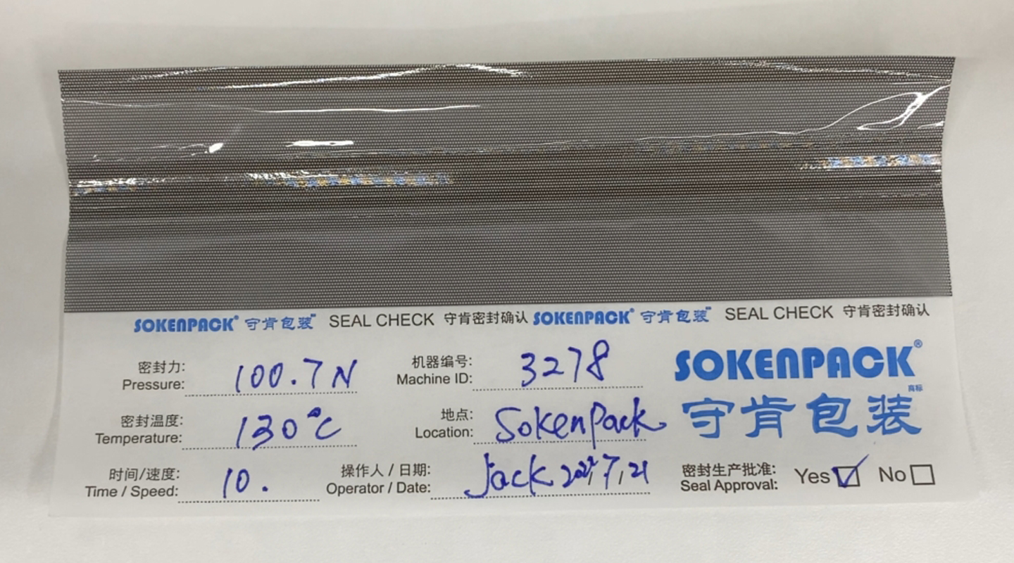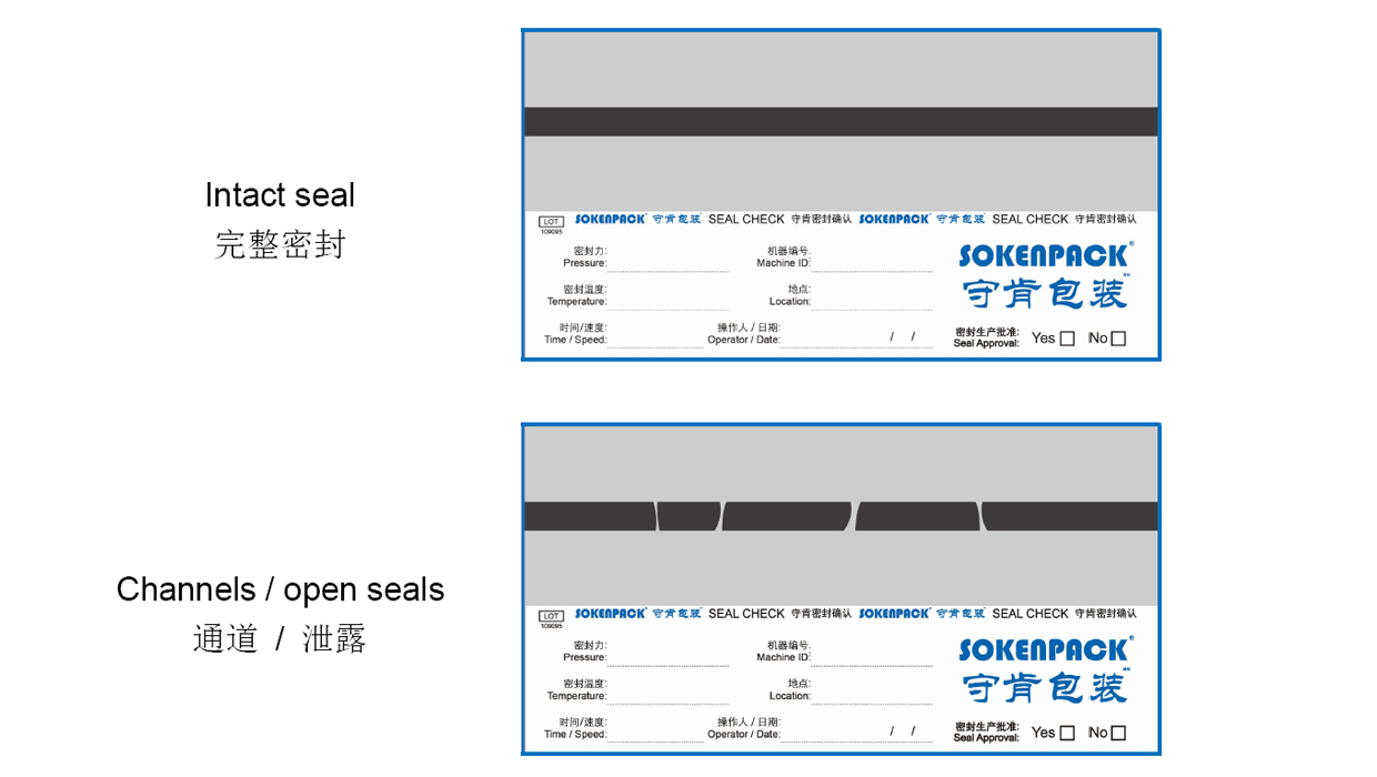 密封檢查表的深色指示涂層使最終的密封缺陷區(qū)域可見。密封期間,可將該表放在薄膜層之間。通過將黑色涂層與薄膜一起密封,密封變得清晰可查,并且可以輕松用肉眼檢測到缺陷。