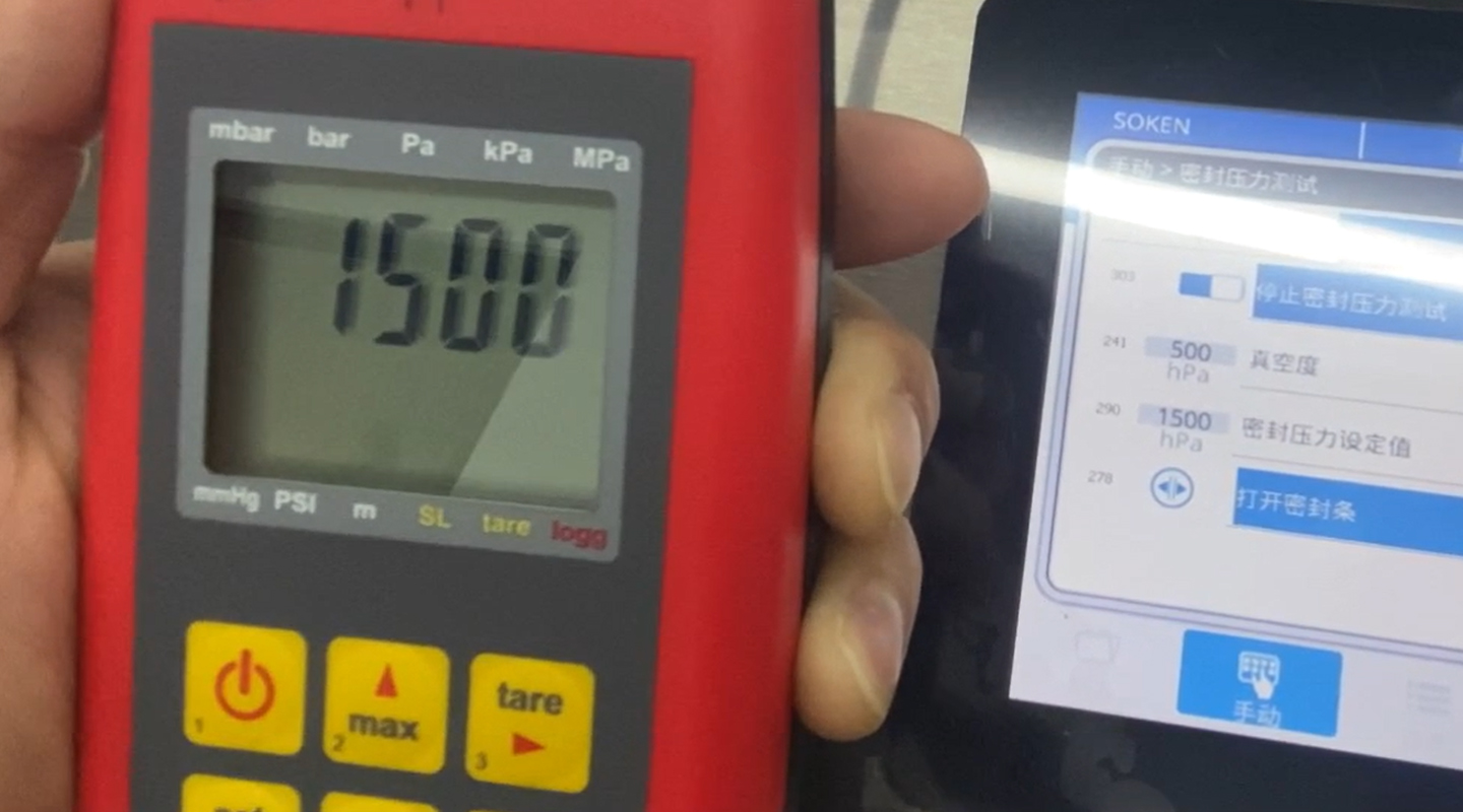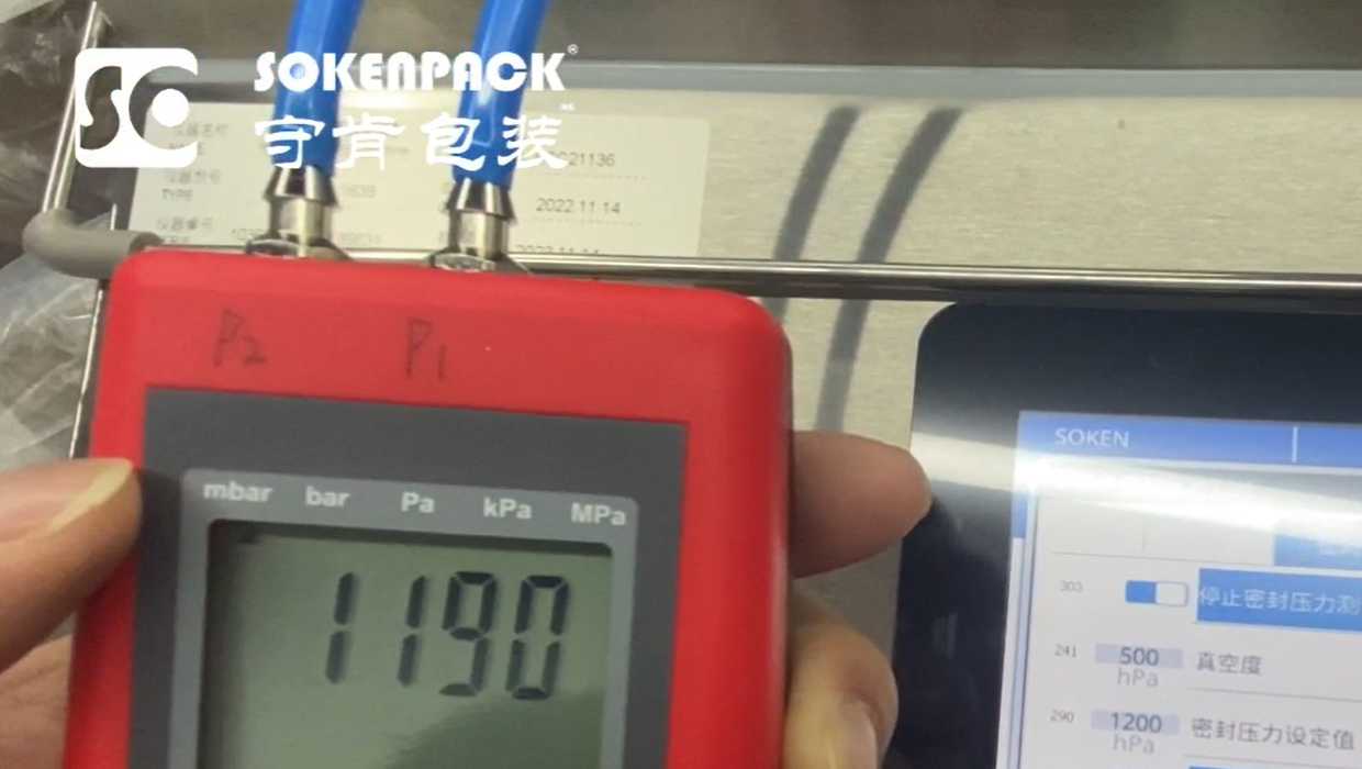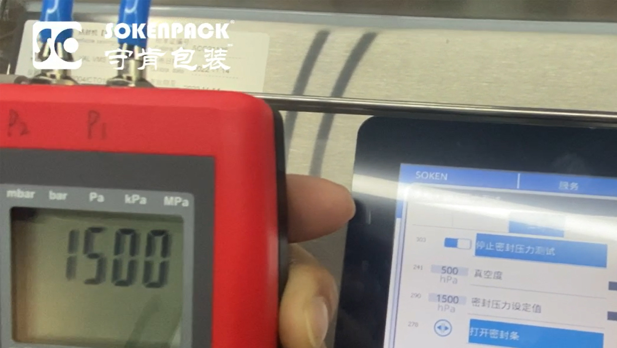可驗(yàn)證真空室的密封壓力等于真空室與密封桿激活壓力之間的壓差,該值可通過 SSPM 測(cè)量。守肯可驗(yàn)證的真空室封口機(jī)的密封壓力讀數(shù)可輕松與 SSPM 進(jìn)行比較。